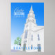 É um dos prédios de Brattleboro. A Igreja Congregacional Central tem uma aranha branca torrencial que realmente se destaca contra um céu azul e nítido, e pessoas em todo lugar olham para ele todos os dias para verificar o tempo. A igreja é feita de madeira, mas tem detalhes para simular pedra. Outra em nossa série de posteres de viagens retrorreflectores com Brattleboro, Vermont.