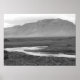 Poster com fotografia a preto e branco de um rio e montanhas na península de Snaefellsnes, Islândia