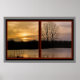 Adicione uma janela extra ao seu gabinete ou sala. Esta poster apresenta um dramático pôr do sol de inverno visto através de uma grande janela. Um belo poster pode ser usado em qualquer lugar.