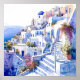 Poster da Praça de Pintura de Aquarela da Grécia Santorini.