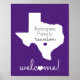 Diga a toda a família para onde ir para a reunião anual com esta placa de design em forma de estado do Texas. Inclui espaço para o nome da sua família e um acolhimento amigável. Disponível em Tech red, Marrom Aggie, laranja queimada Longhorn, verde-águia, azul-real, laranja-menor e roxo Sapo-corado. Personalizável alterando a cor da forma, do coração ou do texto do estado. Produtos correspondentes disponíveis, incluindo convites.