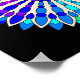 Roda falsa em um padrão espiralante de cor do arco-íris em um fundo bege.