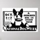 Poster vintage promovendo a Semana Nacional do Cachorro em 1933, com um cão de Boston Terrier e o slogan "Um Cachorro Pedirado em Cada Casa". Eu tenho um casal de variações deste design disponível.