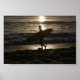 Fotografia da silhueta surfista caminhando na praia, em Oahu Havaí.