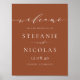 Bem-vindos aos seus convidados de casamento com este romântico sinal de boas-vindas. Este símbolo personalizável de boas-vindas do casamento apresenta um roteiro delicado com tipografia clássica em um fundo de terracota.