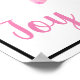 Poster mostrada com uma impressão de fotografia de uma flor de dália rosa bonito. Texto de "Joy peace Love" no fundo. Personalize este item ou comprar como está. Imagem do stock www.freepik.com