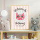 Sinal de Boas-vindas do gatinho Daisy. Possui uma arte popular hippy inspirada no gato rosa, a margarida azul pálida com fundo listrado. Todos os textos podem ser alterados! Selecione download instantâneo para Este tamanho mostrado em excelente para impressão no compro impressão local (18x24) no conselho central de espuma ou no papel poster. Para fazer mais mudanças, vá para Personalizar este modelo. Na parte inferior você verá "Quer personalizar este design ainda mais? Clique em EDIT usando a ferramenta Design. A partir daí você pode mudar algumas fontes e algumas cores, mover coisas ou excluir o que você precisa.#zazzlemade