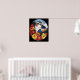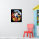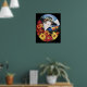 Vibrante, sofisticada ilustração de alta moda Art Déco francesa. Retrato de uma jovem mulher bonita usando um chapéu preto com flor, cores preto, branco, vermelho, azul e amarelo. Design moderno, artístico e legal.