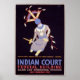 É uma dançarina do diabo Apache simbólica. É um poster governo dos EUA para o show do Tribunal Indiano em São Francisco. É arte antiga. Há cores brilhantes. É dominio público porque foi feito por um funcionário governo.