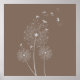 Silhuetas brancas de pássaros minúsculos voando longe de três dandélions gigantes com sementes de dandelion grudadas em seus pés.