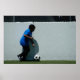 Um jogador de futebol júnior dá 100& de si mesmo num jogo de futebol na arena.