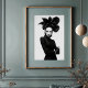 Faça uma declaração impressionante com este impressão de arte branco e preto cativante, uma verdadeira obra-prima da moda de vanguarda e expressão artística. Este retrato frontal convincente apresenta uma mulher de alura intensa, coroada com um extraordinário chapéu preto escultural que se desenrola como uma flor dramática e escura. Vestida em uma camisola preta e elegante, cheia de luvas elegantes de couro e aparando pulseiras prateadas em um punho, seu traje é um estudo em minimalismo sofisticado. Sua pele pálida, lábios pretos escarnecidos, e dramaticamente os olhos alados criam um contraste mesmerizante contra seu conjunto escuro e o fundo branco pristino, enfatizando seu olhar poderoso e direto. Com braços confiantes cruzados, esta trabalho de arte incorpora uma feroz, misteriosa e inegavelmente elegância chica. Perfeito para espaços modernos, estúdios de moda, ou qualquer decoração que busque um toque de sofisticação única, artista ousada, e uma narrativa visual verdadeiramente inesquecível.
