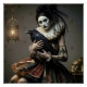 A dark romantic motif featuring a female figure with a crow, rendered in a muted vintage color palette and a restrained gothic aesthetic.