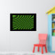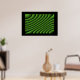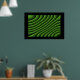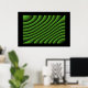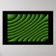 Este poster apresenta uma série criada digitalmente de linhas verdes onduladas que parecem se mover como ondas e trazem à mente uma qualidade hipnótica.