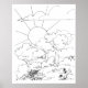 Sol ascensão atrás de árvores na encosta. Arte de Etchegaray-Szalan. Usando caneta de ponta de feltro ou gel, tintas, lápis de geleia ou outro meio, você pode colorir esta poster com seu próprio talo artístico.