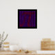 Pi com 3500 casas decimais - poster preto com letras vermelhas e roxas.