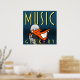 Poster de 9 pol x 9 pol de Beaver Feliz: Music Gee