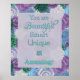Dê um presente de afirmação diária a você mesmo ou a um ente querido - uma bela peça de arte para lembrá-lo todos os dias que você é bonito, inteligente, único e incrível, com flores em tons de azul, roxo e verde.