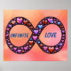 O símbolo infinito coberto com corações de cores diferentes com as palavras "Amor Infinito"