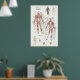 Poster de Anatomia Muscular - Anterior e Posterior Criado com imagens vintage do início dos anos 1900 que quebram os posters estéreis brancos e lisos que estão na maioria dos consultórios médicos. Mostra mais de 80 músculos marcados dos aspectos anterior e posterior do corpo humano, incluindo os músculos profundos.
