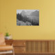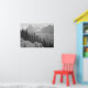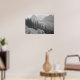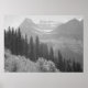 Poster de árvores e montanhas negras e brancas apresentando o Parque Nacional Glacier, Montana, em 1941, por Ansel Adams.