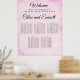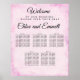 Gráfico de Sentados de Casamento de Casamento de 5 mesas, cor-de-água rosada. Bem-vindos e os nomes dos casais de casamento estão escritos em uma fonte elegante e clássica. Todo o texto pode ser editado. O plano de fundo de lavagem da cor-de-água rosa-pincelada tem uma borda sutil para definir seu sinal.