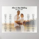 Um poster de assentos de casamento com foto é uma maneira bela e funcional de mostrar seus assentos no seu casamento. Esse tipo de poster apresenta uma foto do casal feliz como a peça central, com o gráfico de assentos disposto em torno dele em um formato elegante e fácil de ler. Os convidados podem facilmente encontrar seus assentos atribuídos e ter uma ideia dos recém-casados ao mesmo tempo. O poster pode ser personalizado para combinar com o tema do casamento e as cores, fazer que seja uma adição adorável à sua decoração. Pode ser impresso numa variedade de materiais, como canvas, papel ou estoque de papelão, e pode ser conservado como uma guarnição apreciada após o casamento.