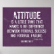 Este poster de futebol foi rasgado para o sucesso da malhação e denim rasgado, colorido, apresenta uma citação motivacional do designer e autor Felicity Luckey. Este impressão desportivo faz parte de uma coleção de 20 posters inspiradores com citações para jogadores de futebol, treinadores e motivação em equipe. Esta citação também figura na nossa série de poster de futebol preto-e-branco e na nossa série de poster de futebol de denim azul. A citação do futebol sobre este poster de motivação diz: "A atitude é uma coisinha que faz uma grande diferença entre o sucesso do futebol e o fracasso do futebol" ~ Felicity Luckey.
