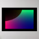Esse poster apresenta uma imagem digitalmente criada que se assemelha à crescente de um planeta escuro cercado por uma aurora cósmica de verde, azul, roxo e rosa.