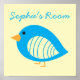 Óptica colorida ilustração de ave em cor azul-branca. Pássaros bonitos e esquisitos vão iluminar seu dia.