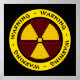 Símbolo de radiação de arte gráfica poster em vermelho, amarelo e preto.