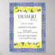 Poster de bar com azulejos de mosaico azul e branco e limões vibrantes. Perfeito para um tema mediterrânico!