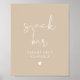 Este sinal de bar de snack apresenta uma fonte manuscrita bege e um design moderno minimalista com uma combinação de cor branca e bege gigante. Altere facilmente as cores da fonte e a cor do plano de fundo para corresponder ao estilo do evento. Par com itens adicionais da Coleção INDIE para uma aparência coesa.