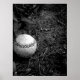Impressão único preto e branco de uma bola de basebol que foi esquecida. Não se esqueça de checar todos os nossos outros impressões!