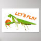 Este poster desportivo único apresenta um gigante mantis verde de oração e as palavras "jogo de vamos".