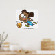 Uma garota jogando basquete com um olhar de concentração no rosto. Esta design parece realmente eficaz nesta Poster