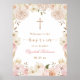 Elegante poster de batismo floral rosa. Um quadro floral de cor rosa-d'água moderno, com cruz. Celebre esta alegre ocasião com a nossa poster personalizada que irá dar o tom para uma reunião memorável e significativa.