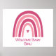 Arco-íris rosa desenhado à mão com modelo de texto. Perfeito por receber uma nova menina.
