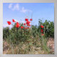 Esta foto foi tirada no sul da França no começo de junho. As papoilas cresciam na beira de um vinhedo, com um belo céu azul atrás.