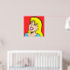 Esta Poster da Blonde Bombshell Comic Strip apresenta um desenho em quadrinhos de uma linda garota loira em um fundo vermelho. Ela tem o nariz do botão, lábios cor-de-rosa do cheio e os sorrisos mais brilhantes. Os olhos dela estão fechados, provavelmente devido ao peso da sua luxúria, lascas pretas. Ela tem uma espessa franja de dentes e cabelos amarelos que se estendem pelos ombros. Sua camisa aqua mal é visível no fundo da design. Ela parece que não tem nenhum cuidado no mundo. E, realmente, ela não deveria ter um cuidado no mundo. Afinal, ela é uma caricatura.