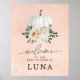 Sinal de Boas-vindas do Chá de fraldas de Abóbora Branco. Correspondendo itens em nossa loja. Coleção Floral Branca. Designs do Partido Cava