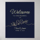 Elegante, moderno, minimalista, simples poster de boas-vindas de marinho azul de com um único desenho de casal de ouro para aves e um roteiro de caligrafia de tendências.
