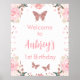 Borboleta cor-de-rosa Borboleta de aniversário Sinal de boas-vindas Borboleta doce Sinal de boas-vindas Sábado de aniversário com duas adoráveis disposições florais cor-de-água rosa e borboletas brilhantes cor-de-rosa-faísca. Este doce sinal de boas-vindas de aniversário de borboletas é um bonito aditamento para as suas meninas borboletas tema de primeira festa de aniversário.