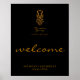 Poster de Boas-vindas da Loja de Lingerie de roupa interior. Apresenta um conjunto de falhas de ouro gráfico em fundo preto. Itens correspondentes disponíveis.