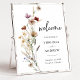 Este poster de boas-vindas na moda e elegante apresenta lindas flores de aquarela pintadas manualmente organizadas como um buquê adorável perfeito para primavera, verão ou casamentos outono. Encontre itens correspondentes na Coleção de Casamentos de Flores Selvagens de Branca.