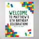 Poster de boas-vindas da Festa de aniversário de Bloco de Construção em azul, verde, amarelo e vermelho! © 2022 Tea Olive Co.