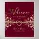 O elegante ouro moderno e o poster de boas-vindas da burgundy vermelha com coração de corda simples e um lugar floral dourado.