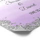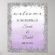 Poster impressão para o sinal de casamento bem-vindo com falso design de cintilação prateada e fundo de lavanda roxa ombre.