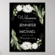 20x28 galos de casamento florais brancos são poster de boas-vindas. Personalizável. Parte de uma coleção