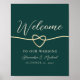 Elegante, moderno, minimalista e esmeralda poster de boas-vindas com corda de ouro falso e simples roteiro de caligrafia manuscrito.